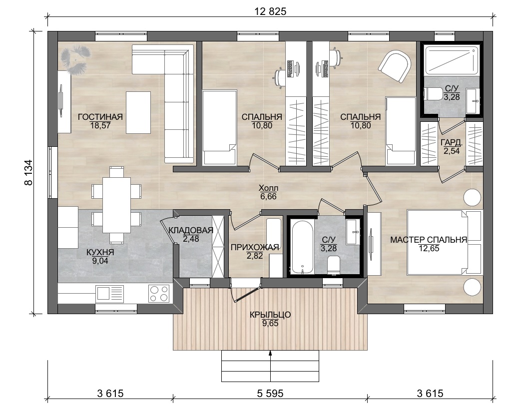 | Не включено: | окна, двери, доставка домокомплекта, дополнительные затраты на фундамент, сопутствующие расходы на подрядные работы | ||