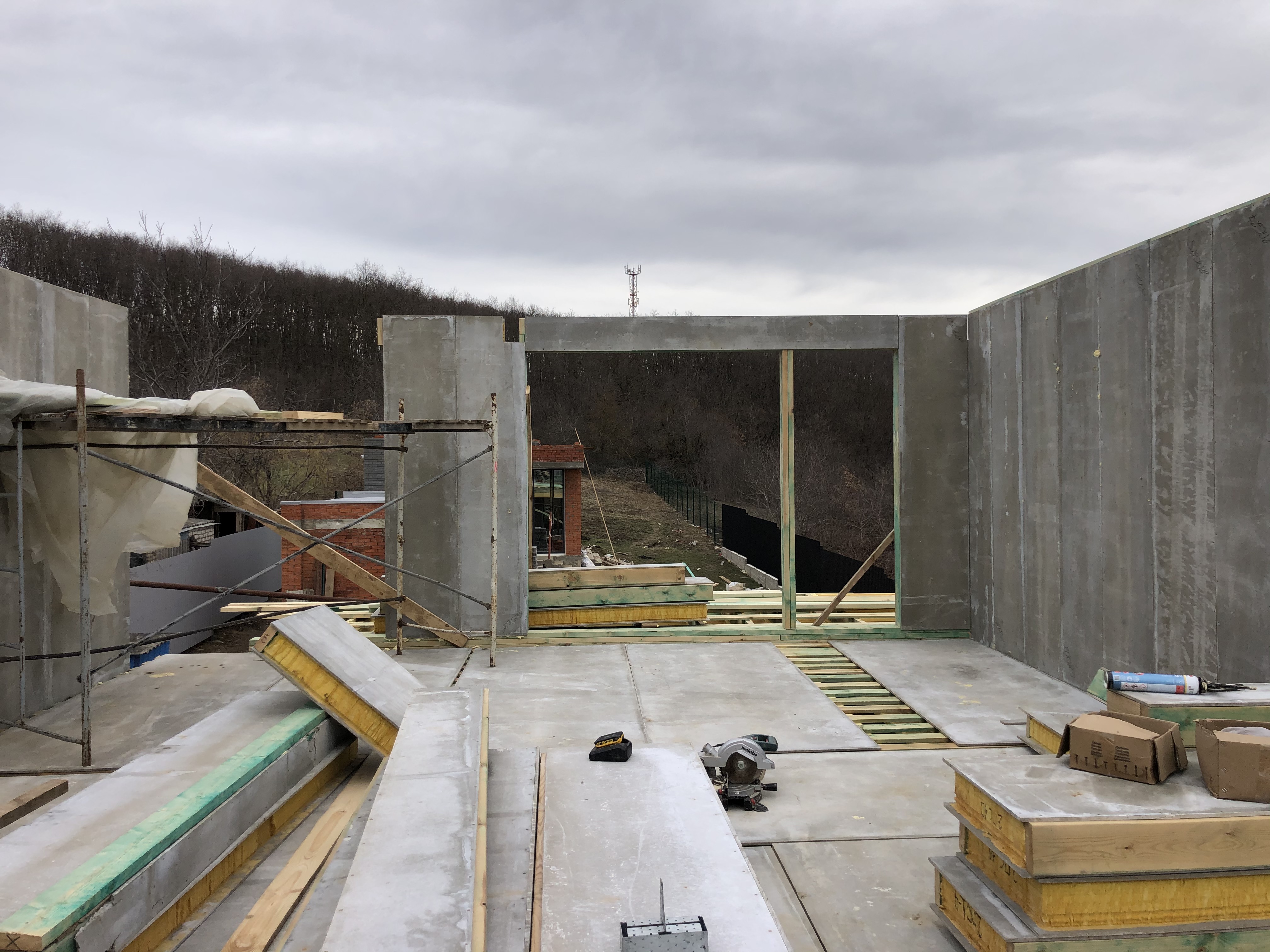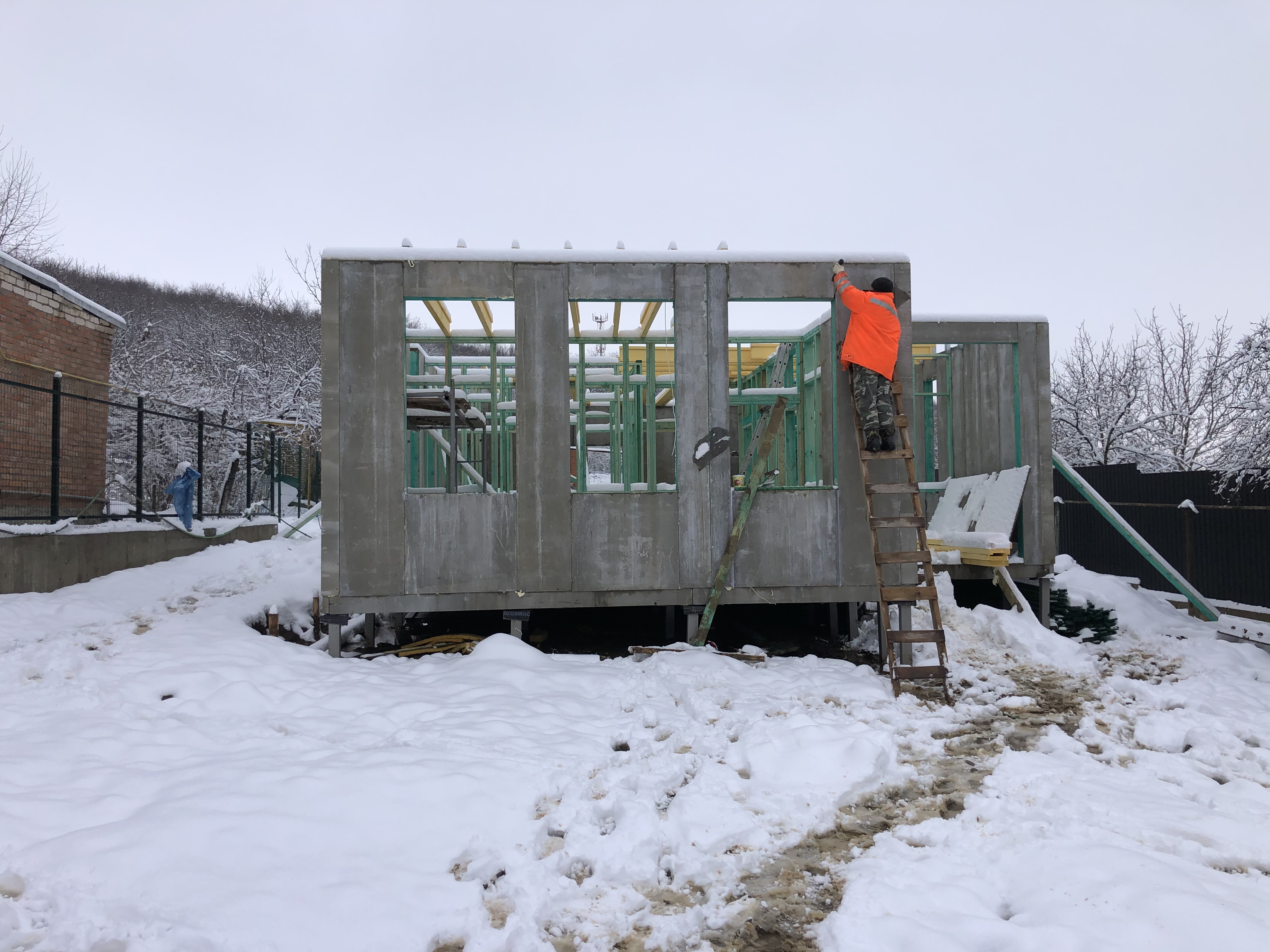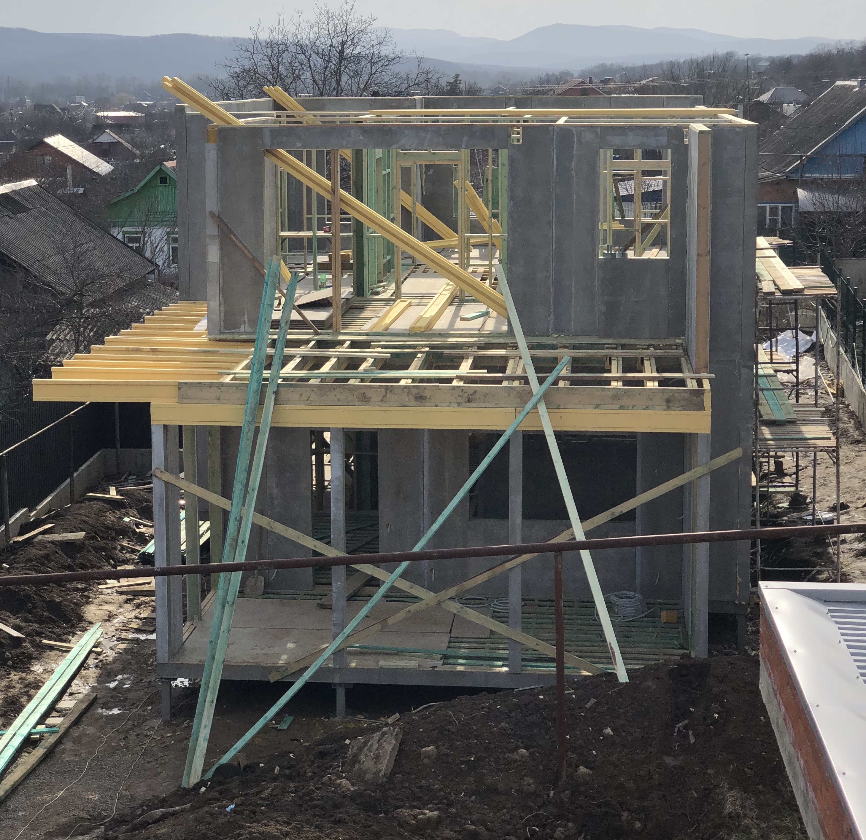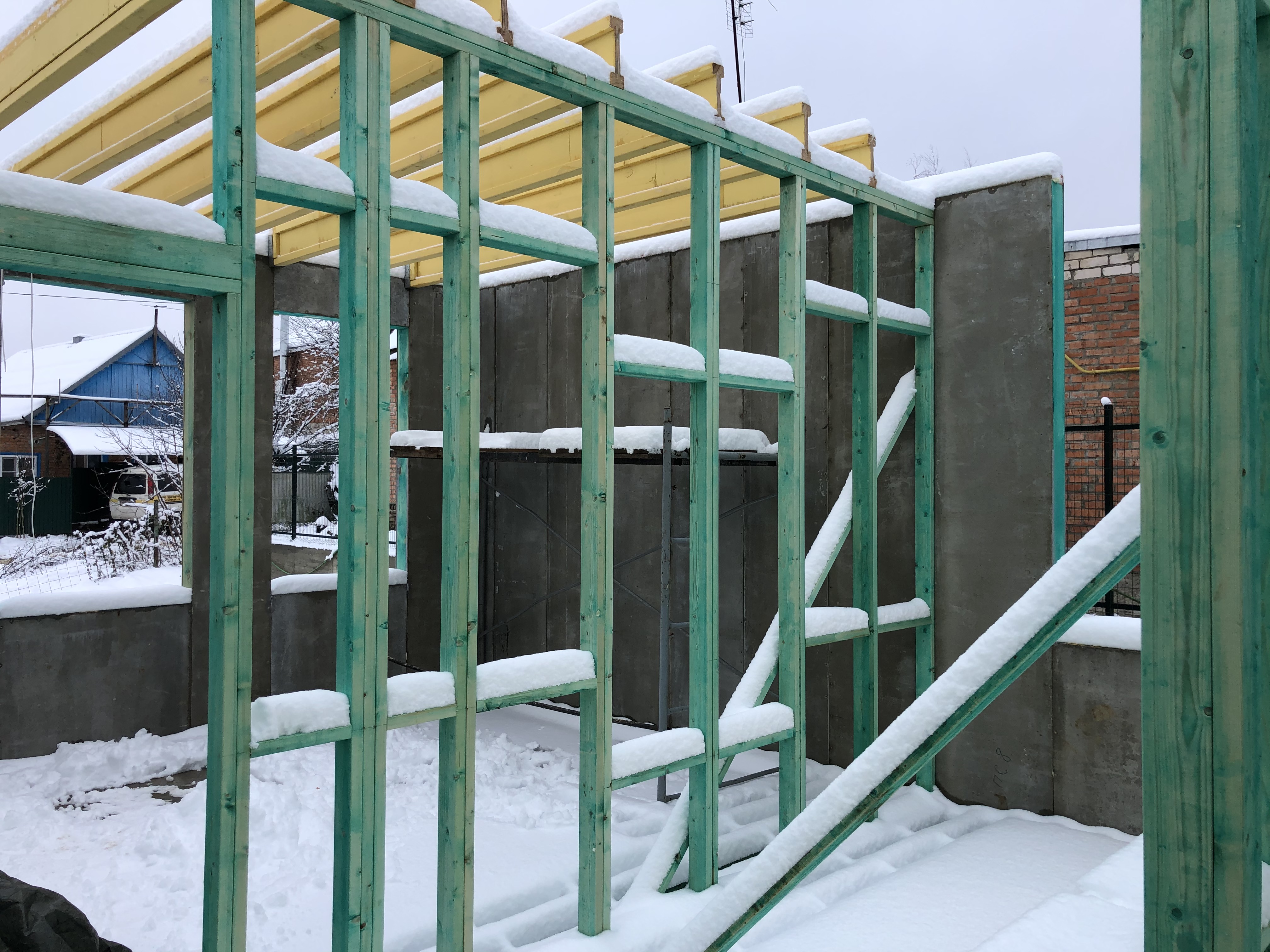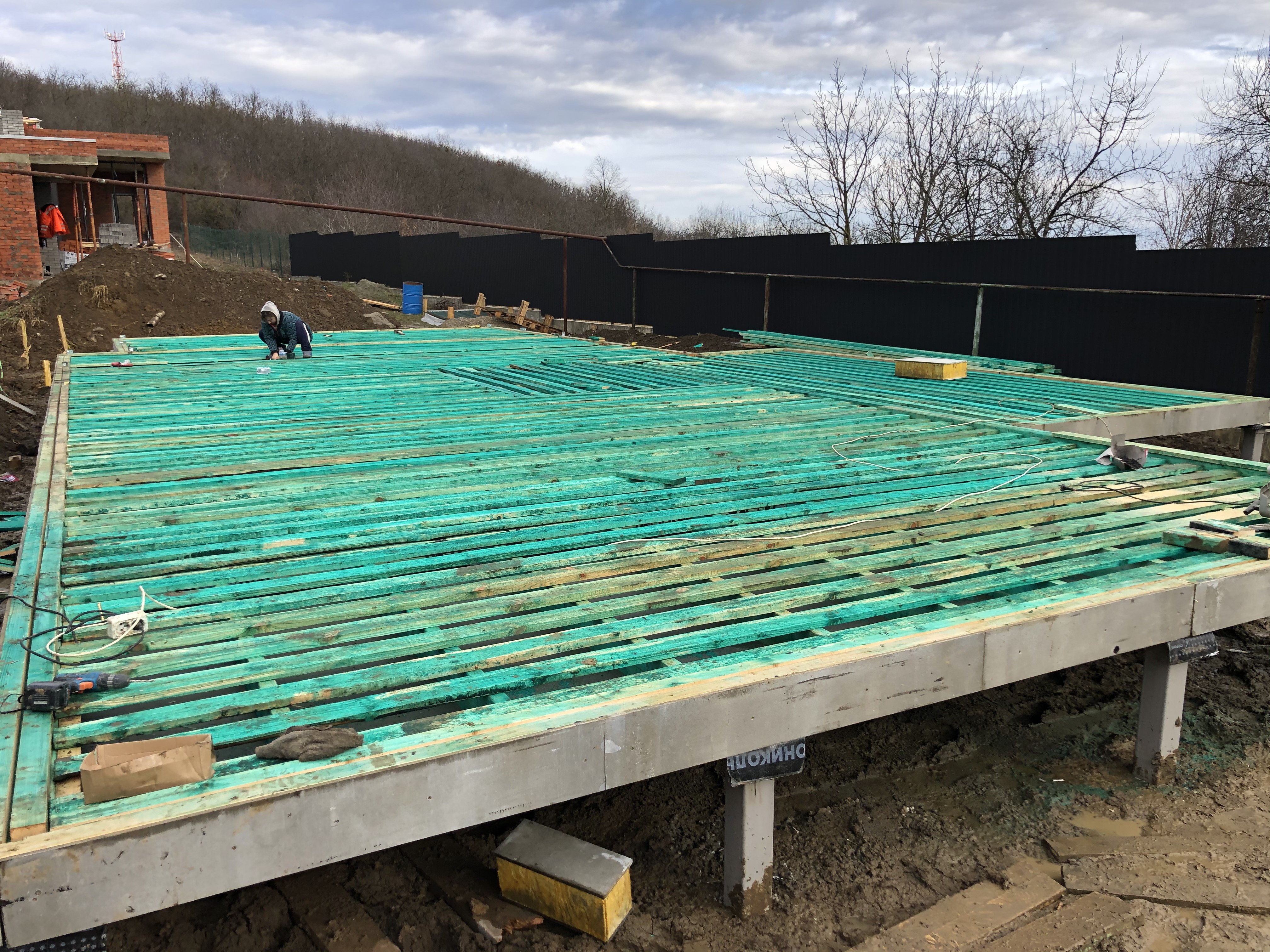 Ростверк изготовлен из калиброванного клееного бруса и защищен снаружи цементно-стружечной плитой