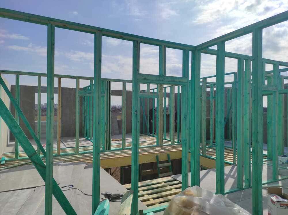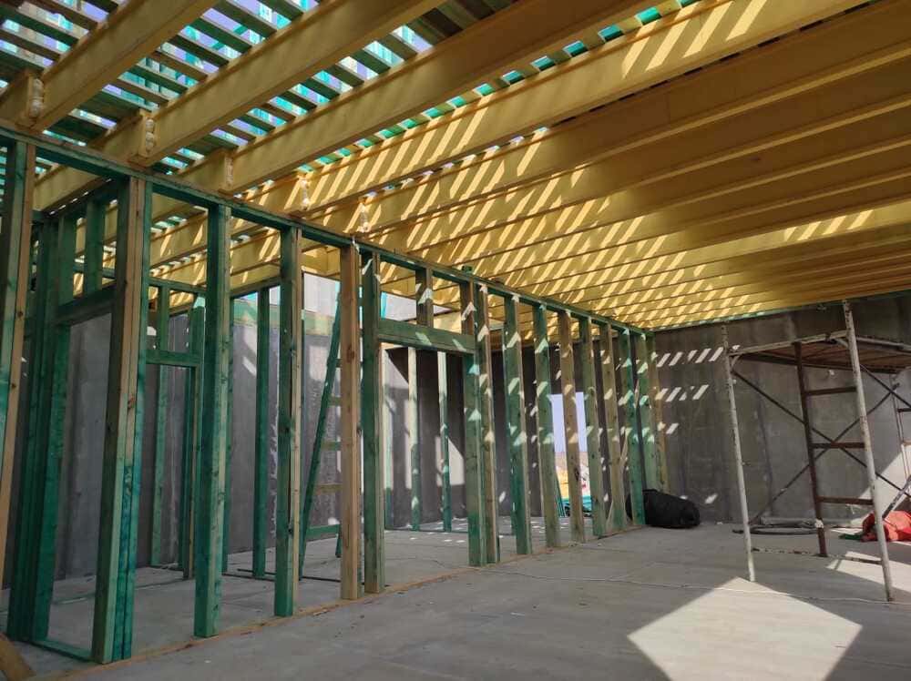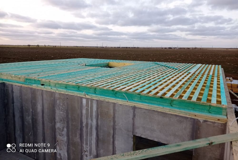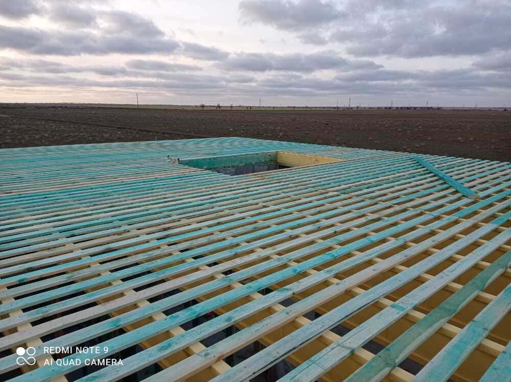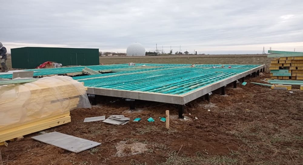 Ростверк изготовлен из калиброванного клееного бруса и защищен снаружи цементно-стружечной плитой