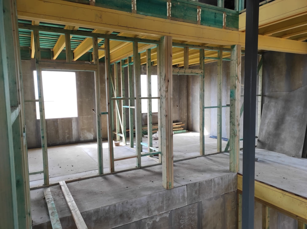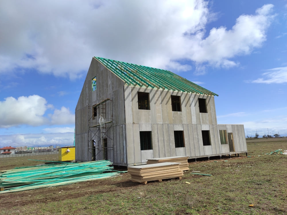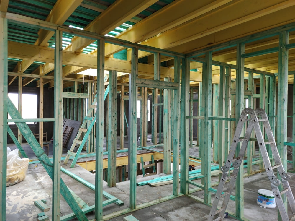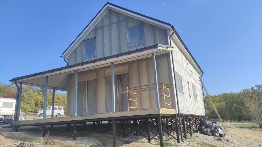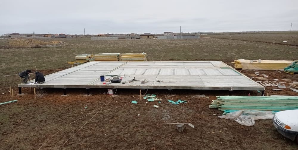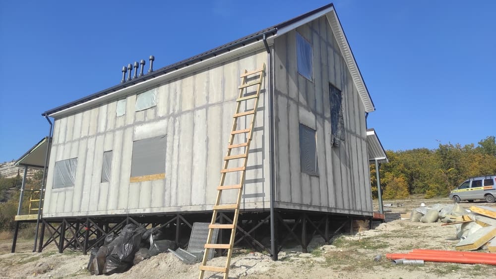 Ростверк изготовлен из калиброванного клееного бруса и защищен снаружи цементно-стружечной плитой