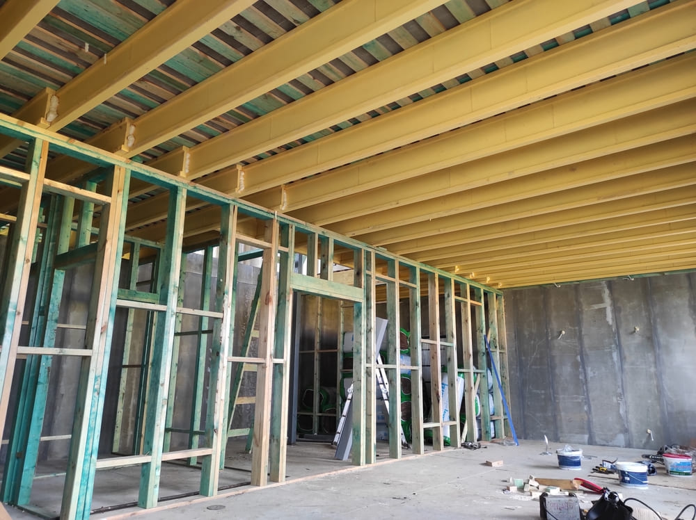 Потолок состоит из двутавровых балок 250 мм, а шаг монтажа балок - 600 мм.