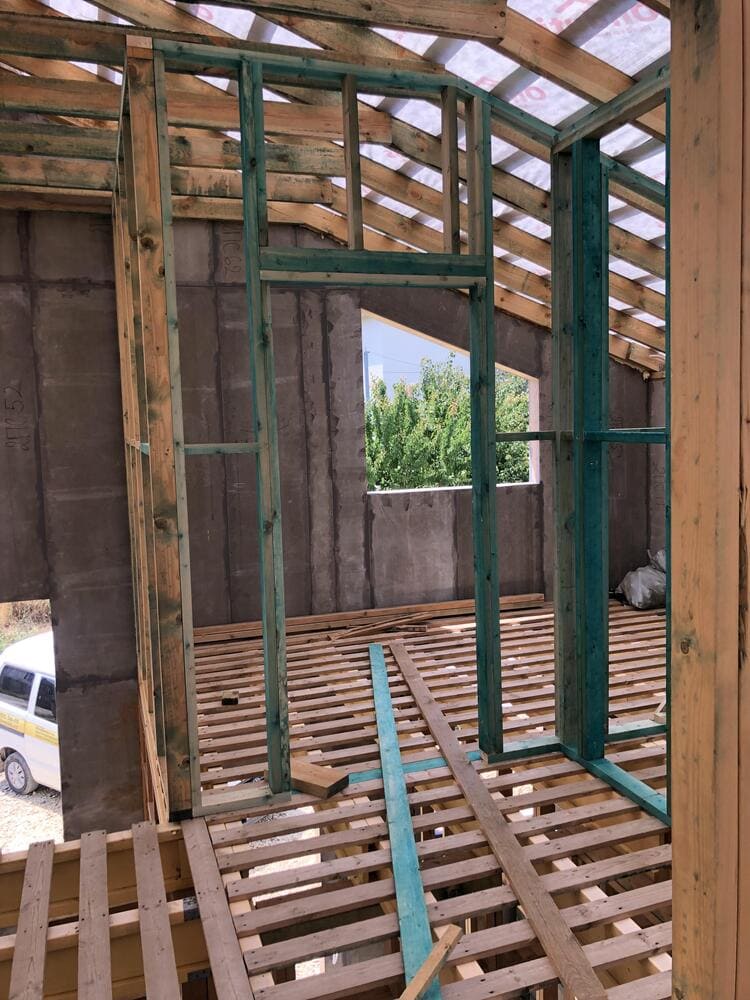 Ростверк изготовлен из калиброванного клееного бруса и защищен снаружи цементно-стружечной плитой