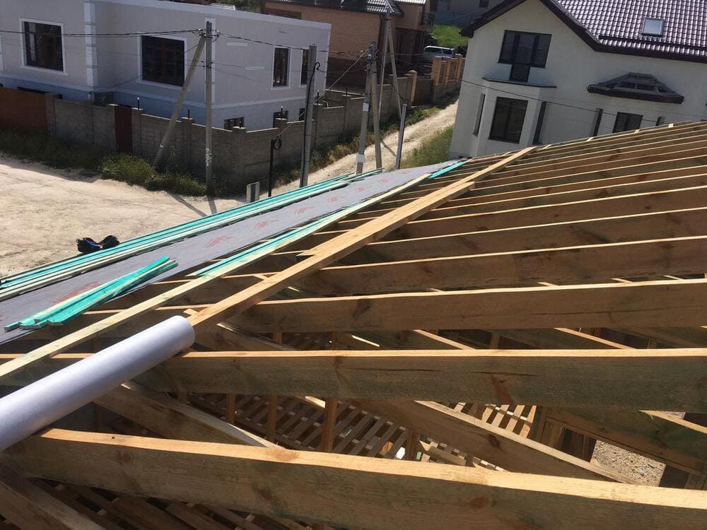 Кровля может быть построена из бруса 150х50мм или SIP панелей. В качестве кровельного материала можно использовать: металлочерепицу, битумную и керамическую черепицу. Также производим кровельные шовные сэндвич-панели.