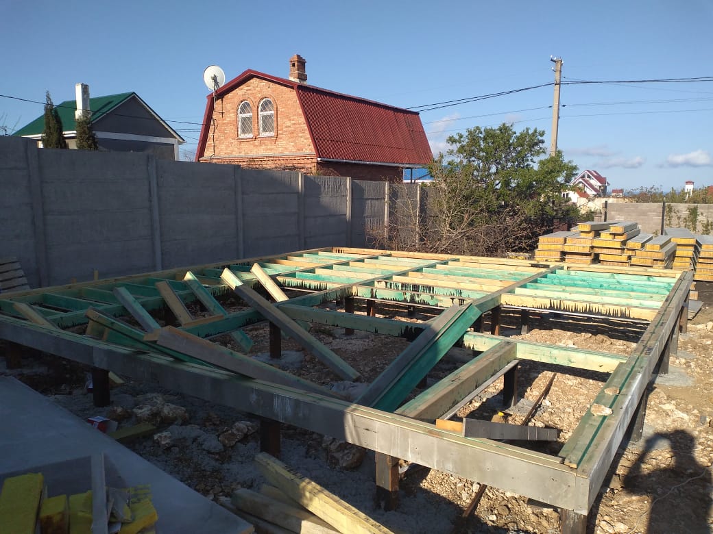 Ростверк изготовлен из калиброванного клееного бруса и защищен снаружи цементно-стружечной плитой