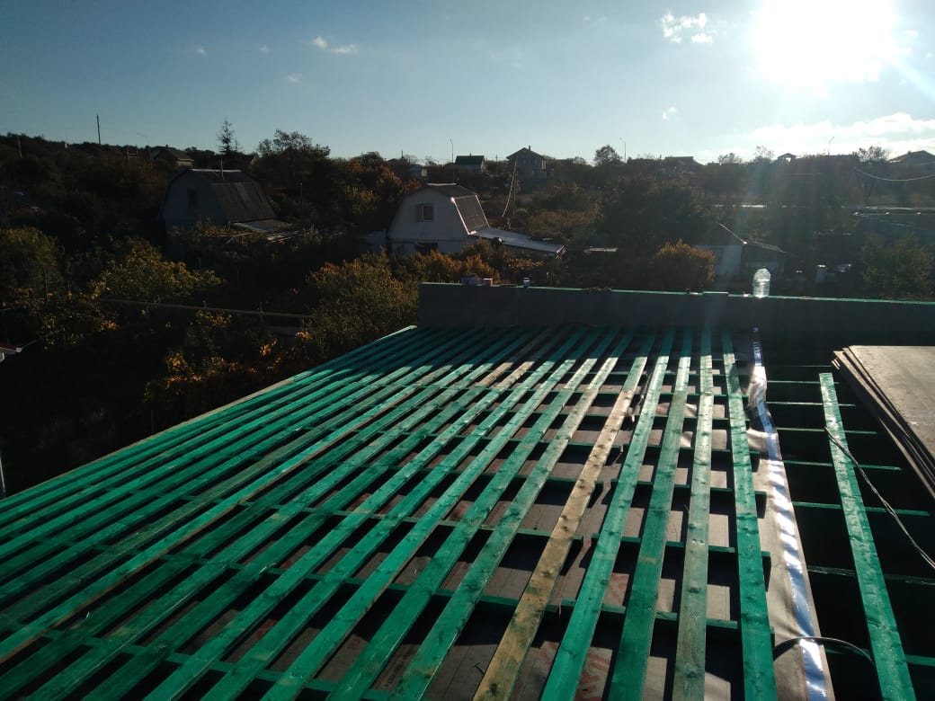 Кровля может быть построена из бруса 150х50мм или SIP панелей. В качестве кровельного материала можно использовать: металлочерепицу, битумную и керамическую черепицу. Также производим кровельные шовные сэндвич-панели.