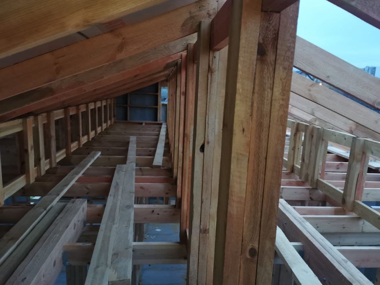 Кровля может быть построена из бруса 150х50мм или SIP панелей. В качестве кровельного материала можно использовать: металлочерепицу, битумную и керамическую черепицу. Также производим кровельные шовные сэндвич-панели.