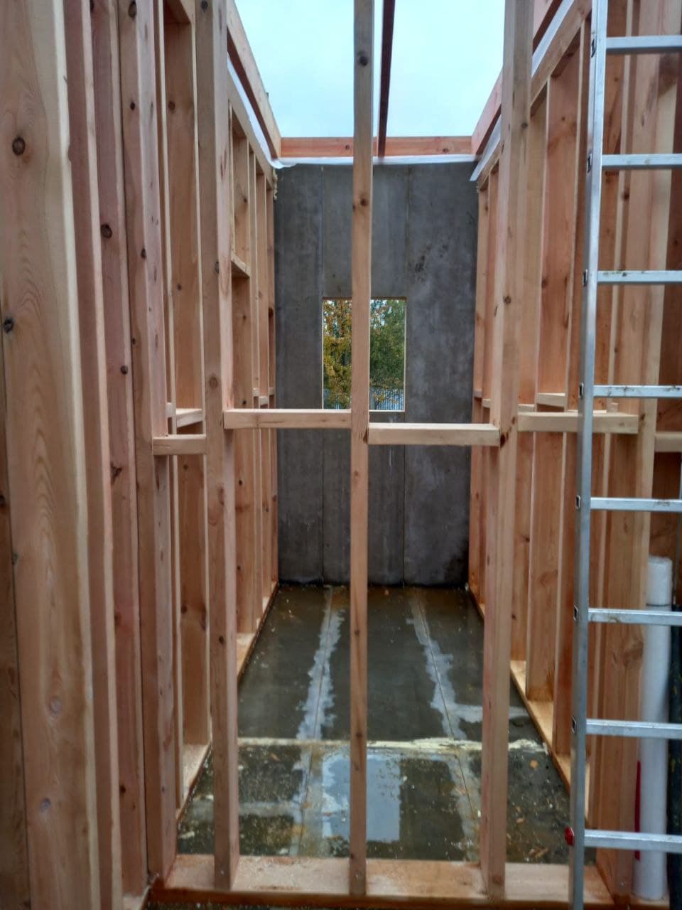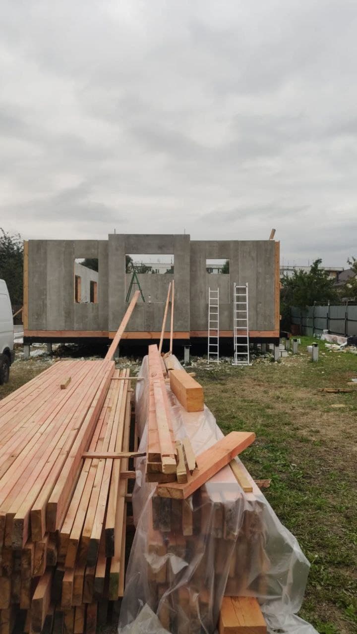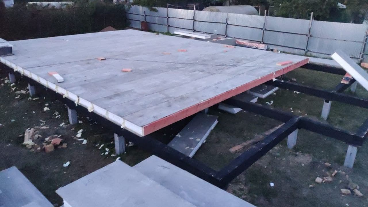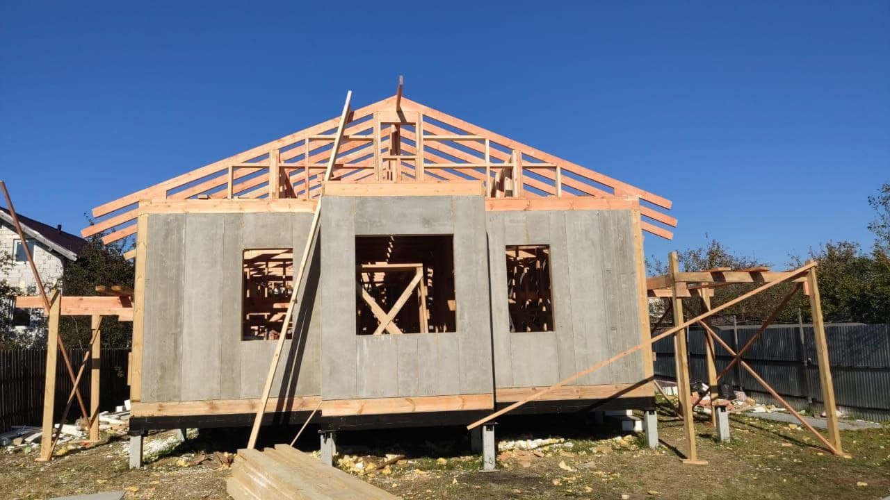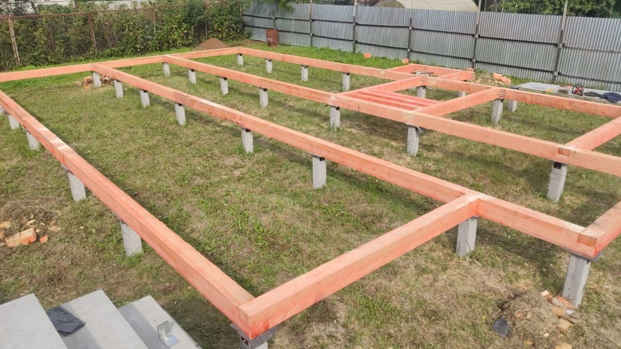 Ростверк изготовлен из калиброванного клееного бруса и защищен снаружи цементно-стружечной плитой