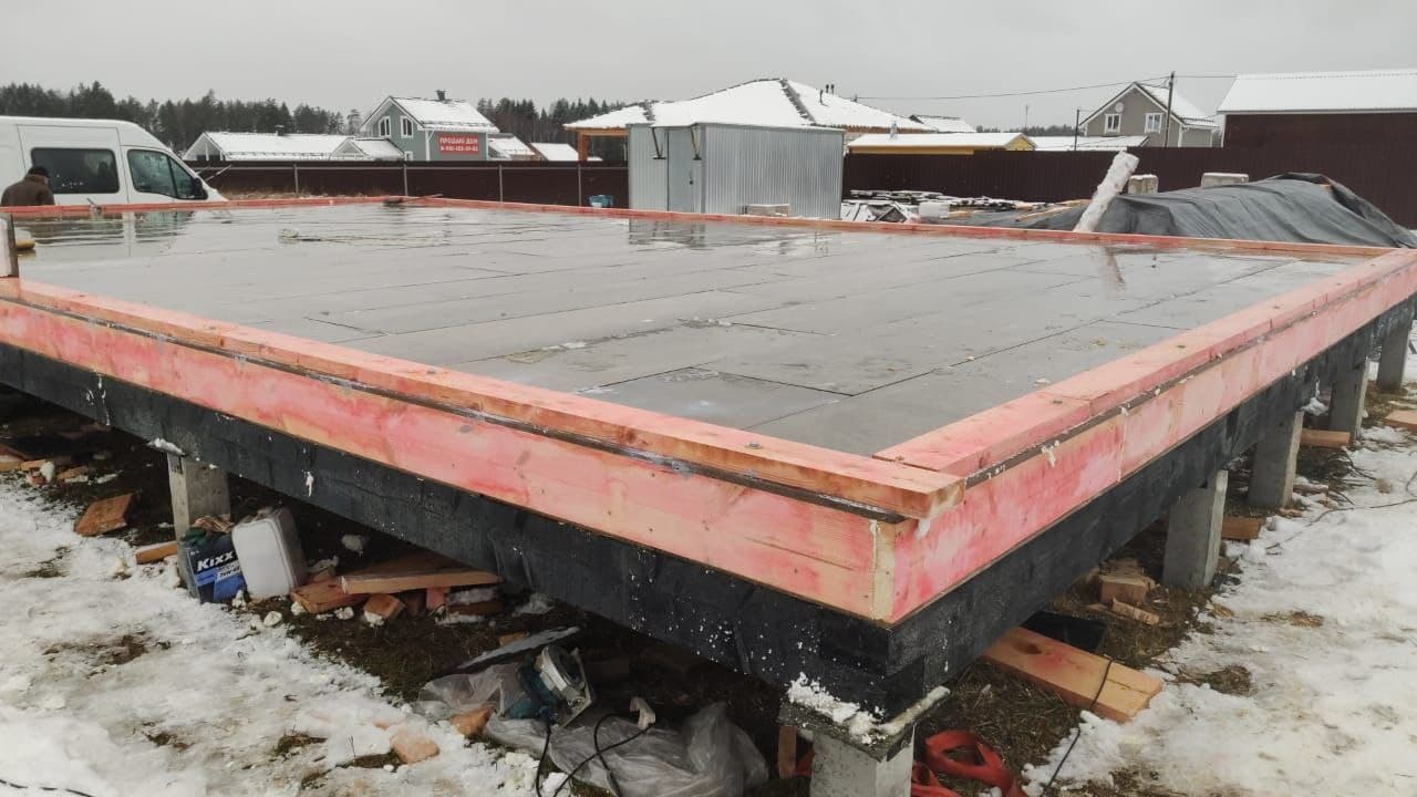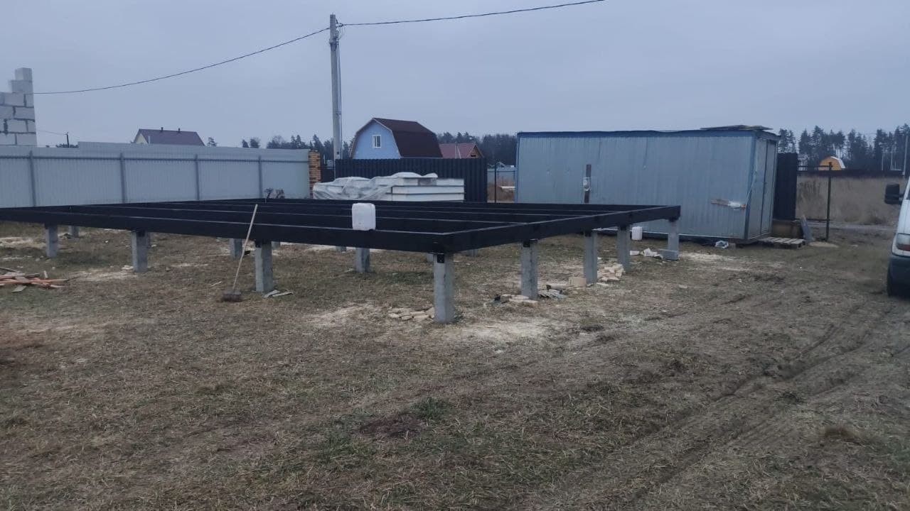 Ростверк изготовлен из калиброванного клееного бруса и защищен снаружи цементно-стружечной плитой