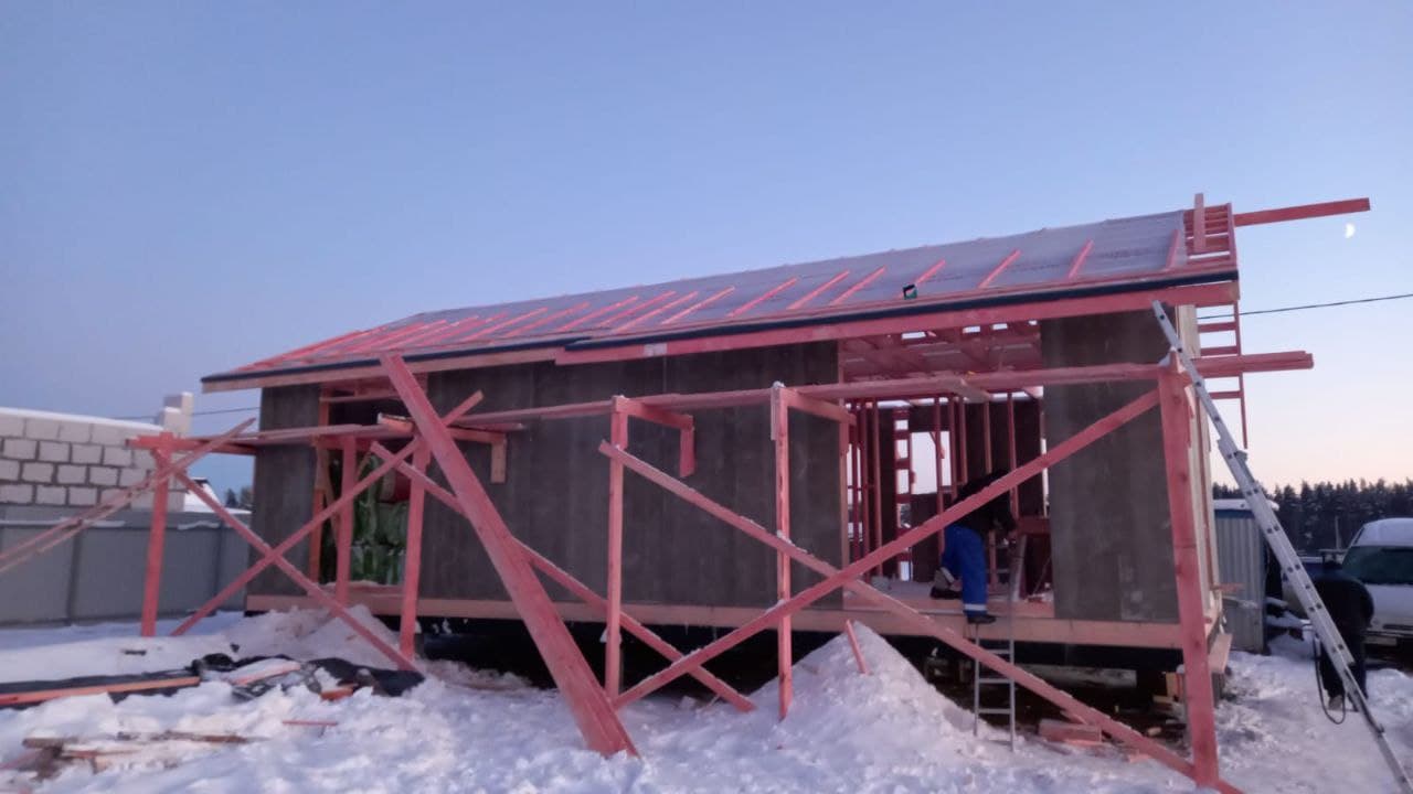 Кровля может быть построена из бруса 150х50мм или SIP панелей. В качестве кровельного материала можно использовать: металлочерепицу, битумную и керамическую черепицу. Также производим кровельные шовные сэндвич-панели.