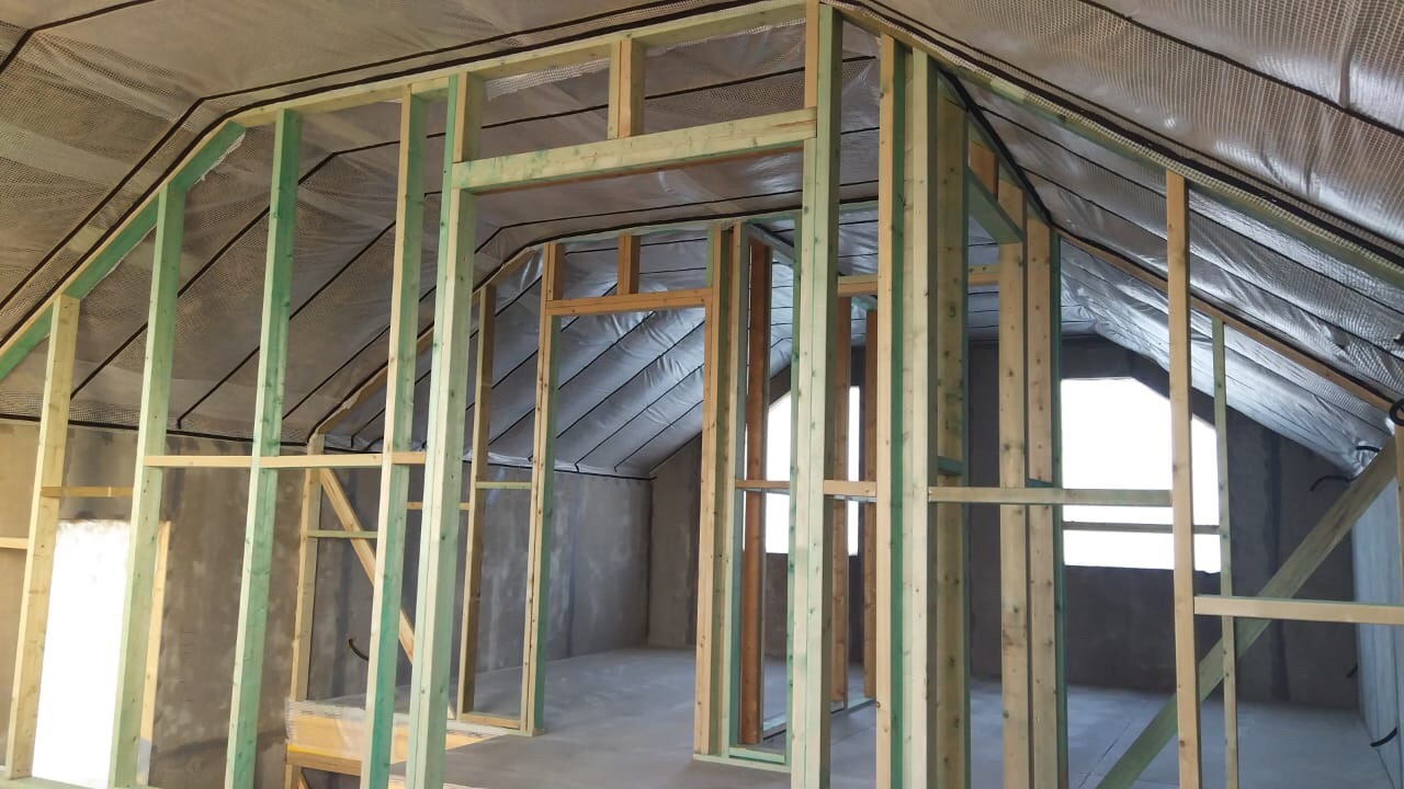 Ростверк изготовлен из калиброванного клееного бруса и защищен снаружи цементно-стружечной плитой
