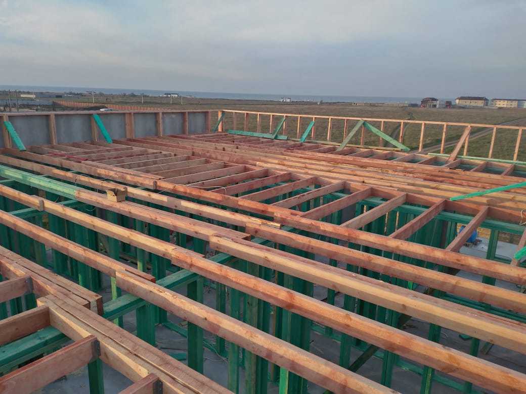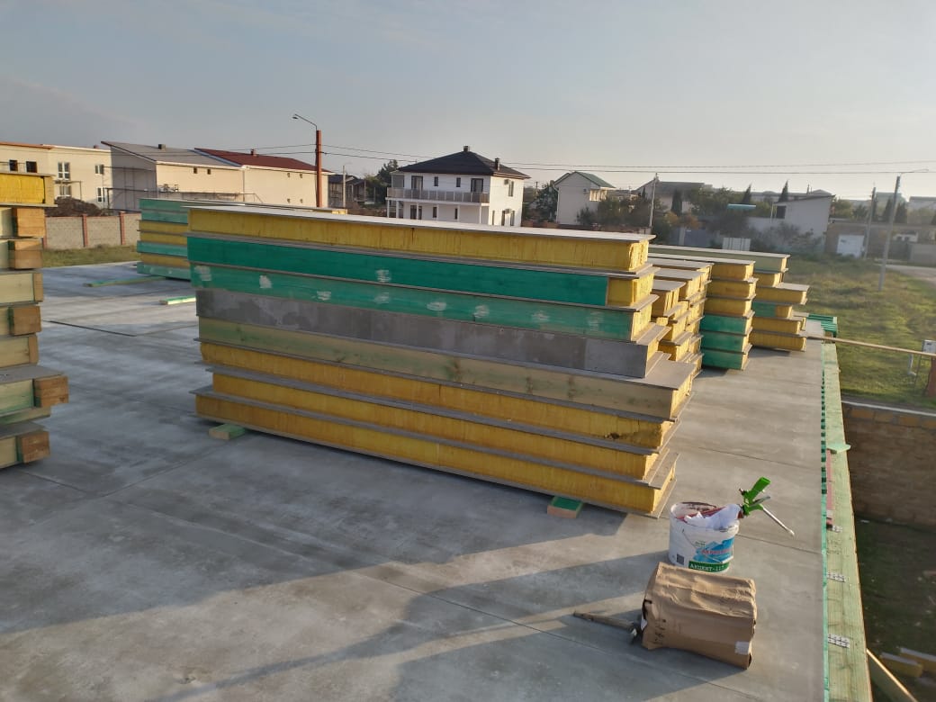 Кровля может быть построена из бруса 150х50мм или SIP панелей. В качестве кровельного материала можно использовать: металлочерепицу, битумную и керамическую черепицу. Также производим кровельные шовные сэндвич-панели.