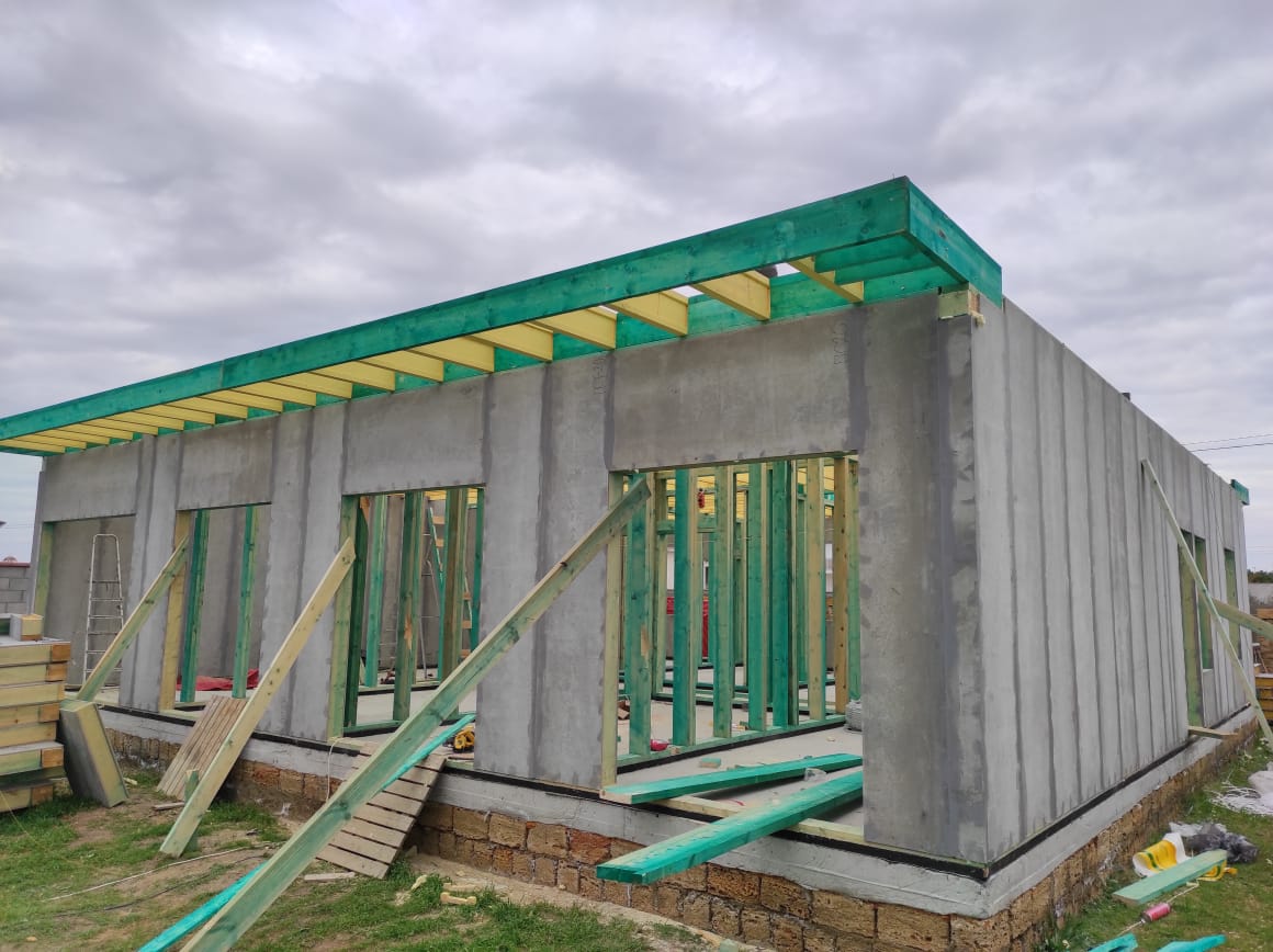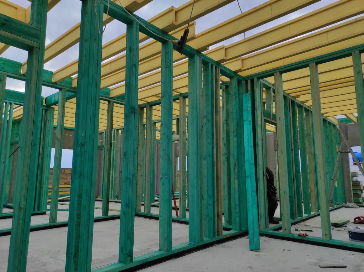 Ростверк изготовлен из калиброванного клееного бруса и защищен снаружи цементно-стружечной плитой