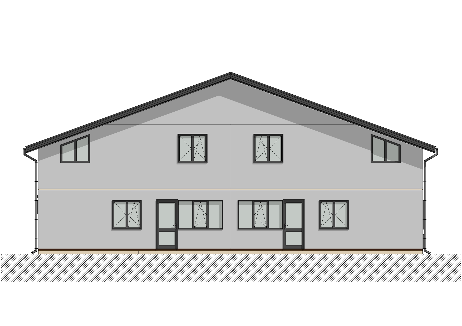 пиломатериал 1-го сорта естественной влажности, антисептированный (стропила 50*150 мм, обрешетка, поперечная обрешетка), пароизоляция А, D, утеплитель 150 мм, софиты (С-8 профиль), кровля - металлопрофиль (металлочерепица).