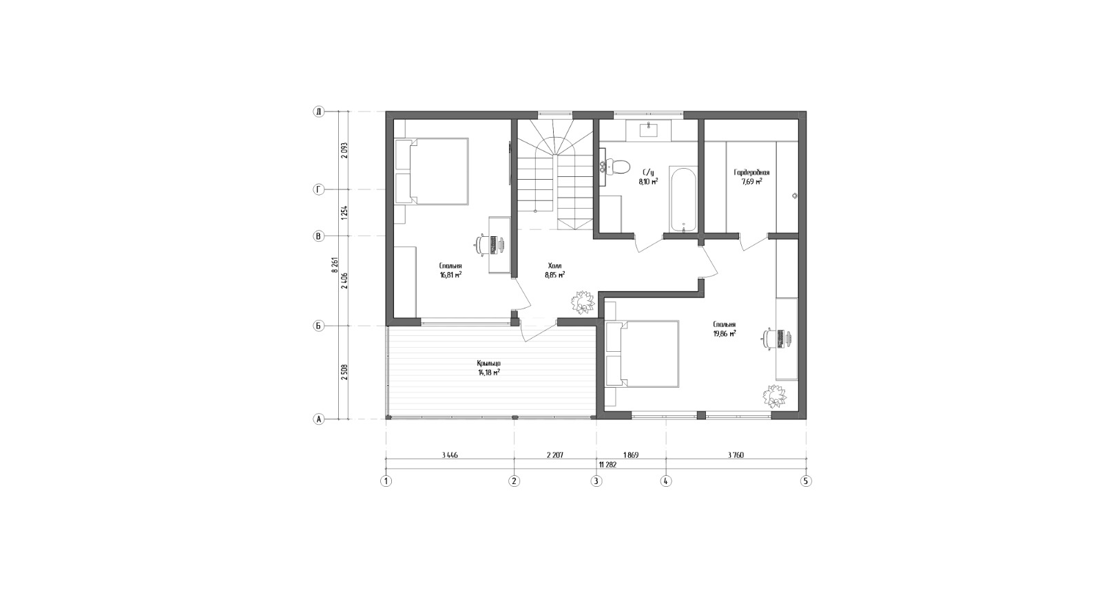 • Внутренние перегородки-каркас из сухой строганной доски: несущие 46х145 мм. Сборка в стоимость не входит