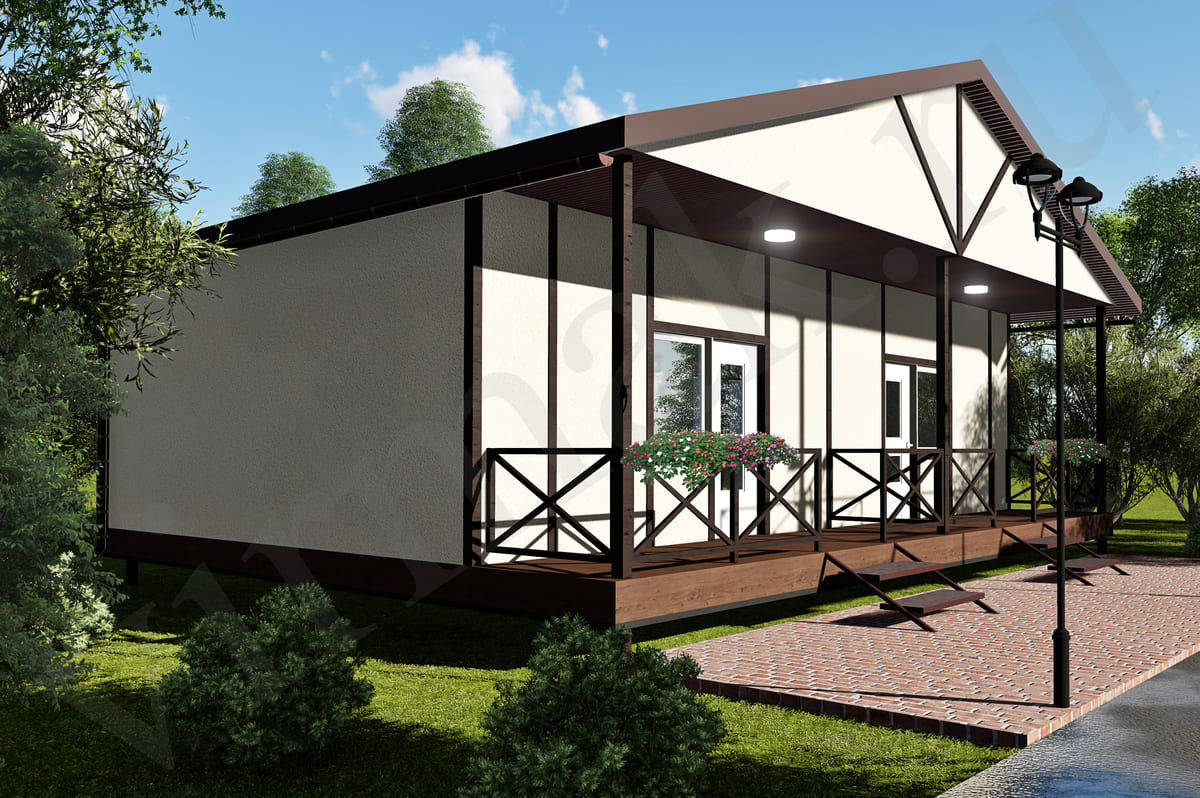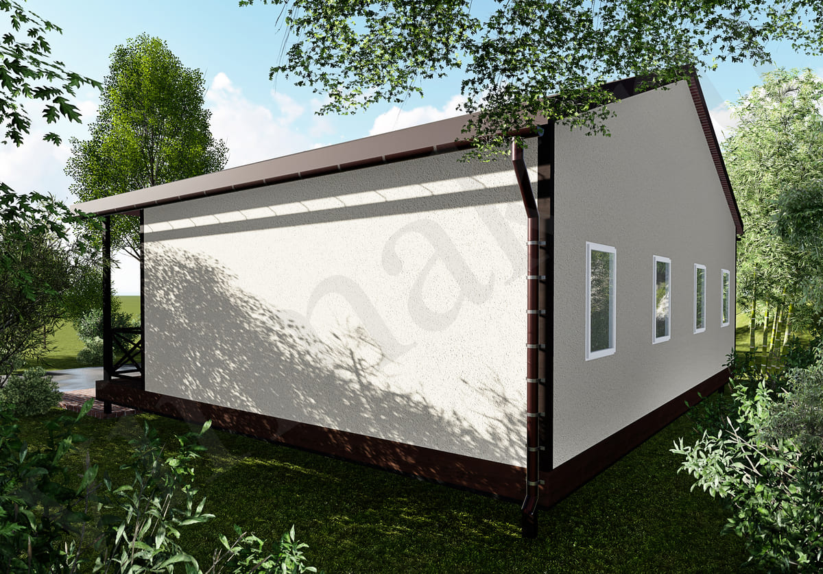 • Плоская или скатная утепленная кровля (пароизоляционная пленка, утеплитель вата на основе стекловолокна или базальта, гидро-ветрозащитная мембрана) с покрытием из металлочерепицы, полимерной мембраны или гибкой черепицы. (цена отличается от выбранного типа) (Ширина карнизного свеса от 30 см. Водосточная система в стоимость не входит