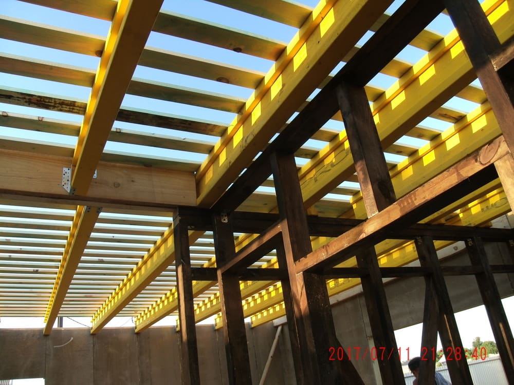Ростверк изготовлен из калиброванного клееного бруса и защищен снаружи цементно-стружечной плитой