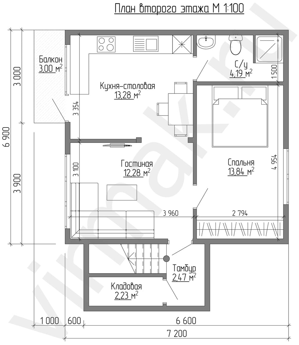 План этажа м 1:100